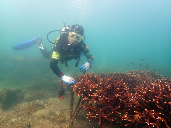Huang earned his doctorate at the Institute of Oceanography under the Chinese Academy of Sciences, specializing in aquaculture and molecular biology techniques. "I knew nothing about coral reefs before taking this job, but once you start something, you must strive for results," he said.